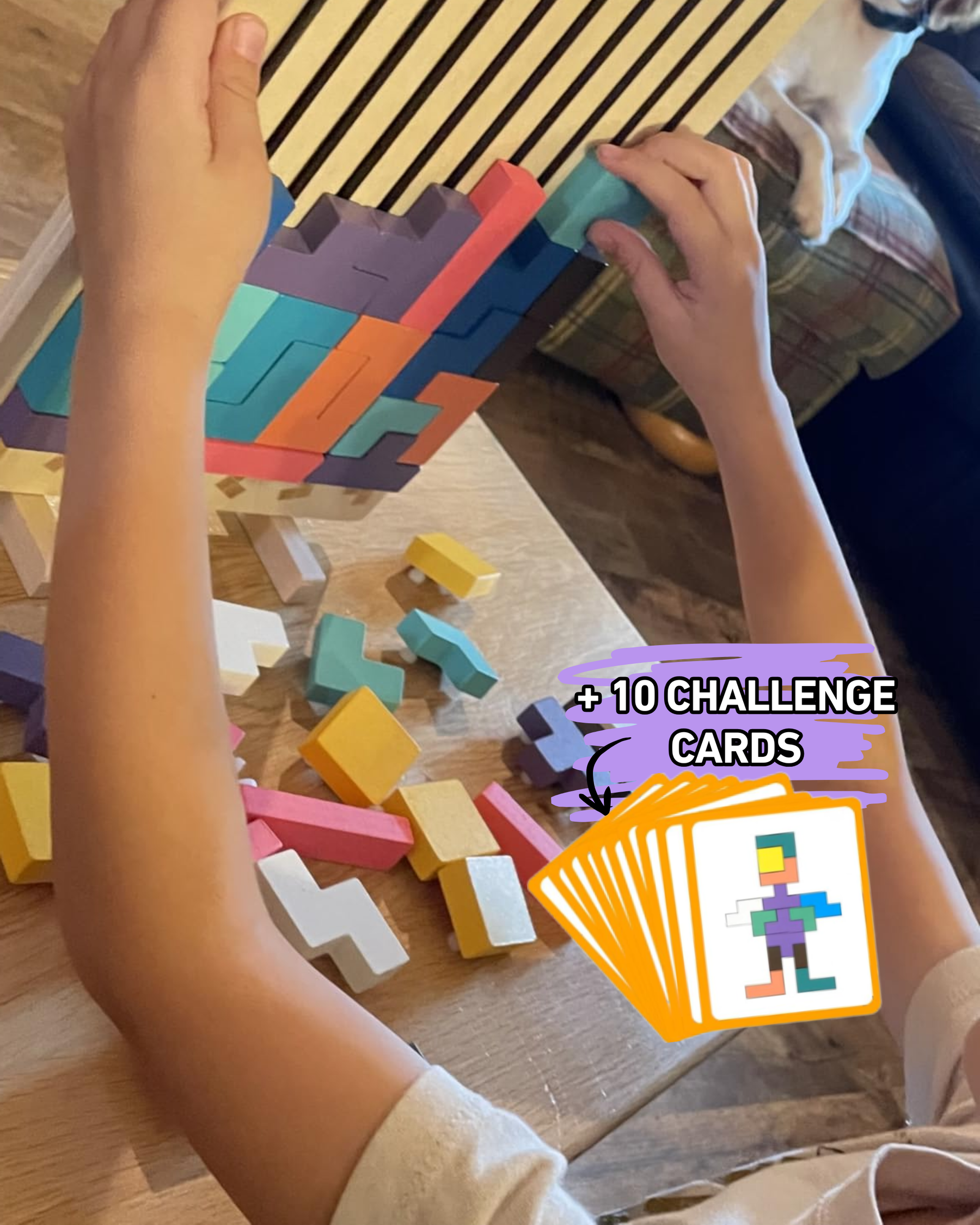 Not at all! The included double-sided pattern cards range from simple beginner shapes to more advanced designs. Most children aged 3–5 can play confidently and grow into the harder challenges as their skills improve.